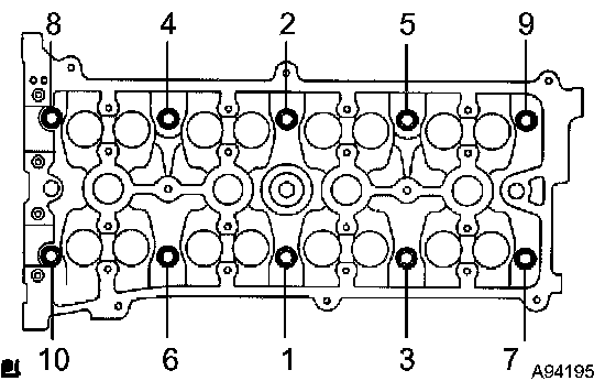 Using a 10 mm bi-hexagon wrench, uniformly tighten the 10 bolts in the sequence shown in the illustration.