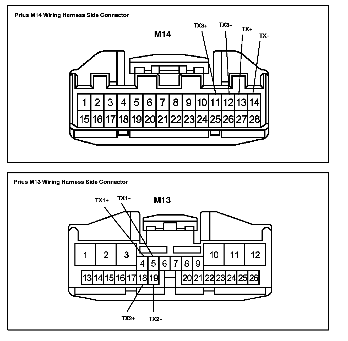 1. Check all the TX terminals on the multi-display connectors (please see connector diagrams) and confirm the terminals are fully seated. Replace any damaged terminals or connectors.