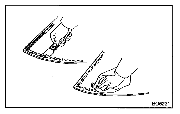 HINT: If the area other than the specified is coated by accident, wipe off the primer with a clean shop rag before it dries