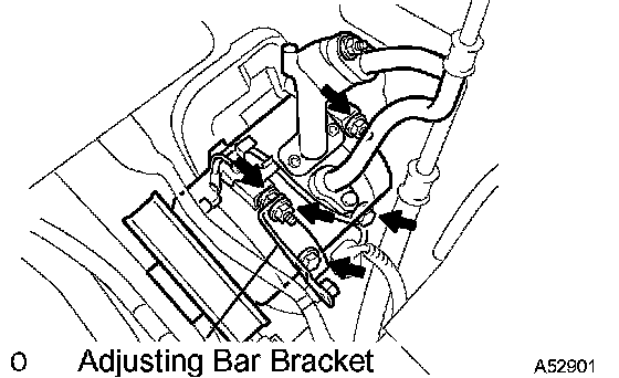 a. Remove the 2 bolts, 2 nuts and adjusting bar.