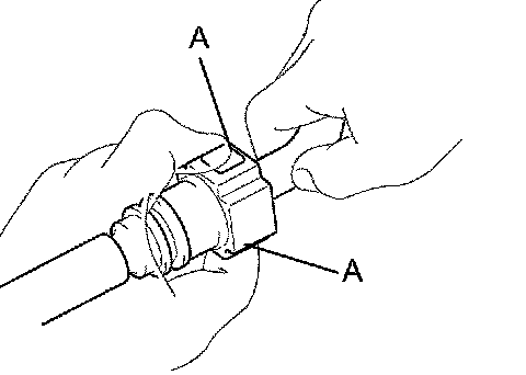 b. Disconnect the connector from the tube while pinching part A with fingers as shown in the illustration.