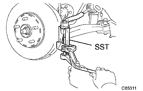 b. Using SST, disconnect the tie rod end from the steering knuckle.