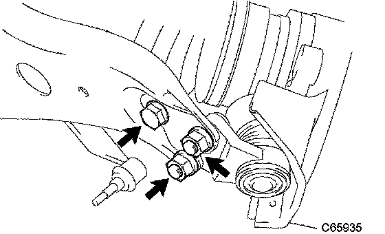 a. Remove the bolt and 2 nuts, and separate the front suspension arm from the lower ball joint.
