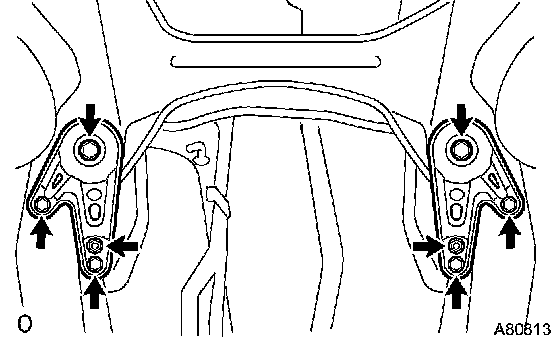 c. Remove the 6 bolts, 2 nuts, and front suspension member brace rear LH and RH.
