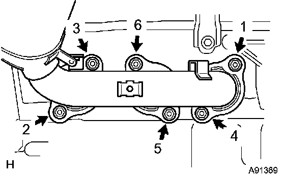 c. Uniformly loosen and remove the 6 nuts in the sequence shown in the illustration.