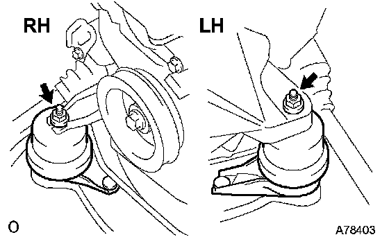 a. Remove the 2 nuts and disconnect the engine mounting insulator RH and LH.