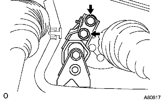 c. Remove the 2 bolts and disconnect the engine mounting insulator RR.
