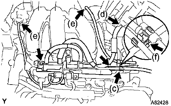 e. Disconnect the 2 vacuum hoses.