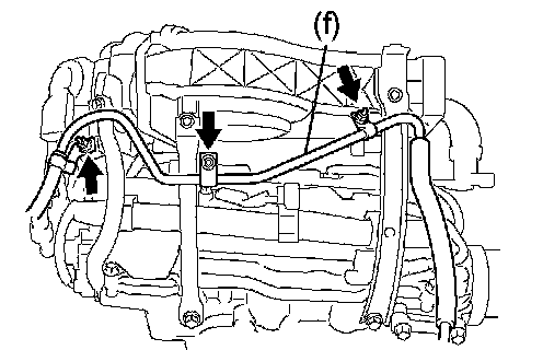 k. Remove the 2 nuts, emission control valve bracket and in take air surge tank.