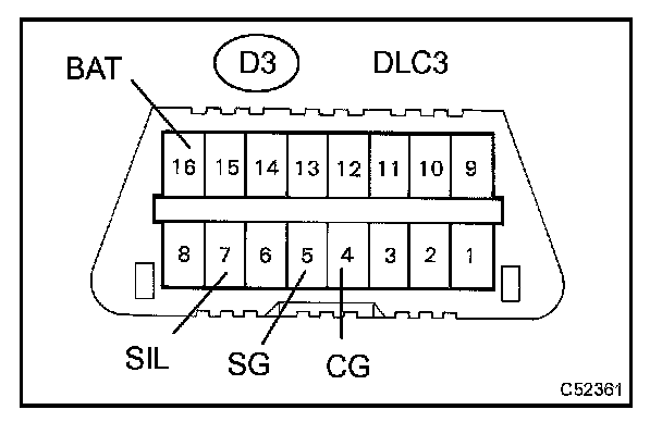 The terminal arrangement of DLC3 complies with SAE J1962 and matches the ISO 9141-2 format.