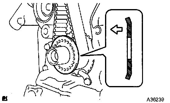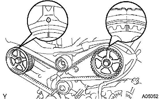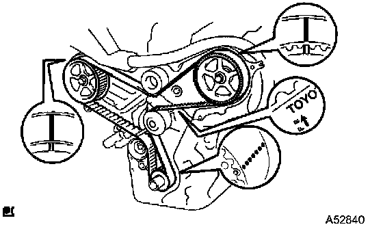 ^ If there is a trace of water and/or oil on the timing belt, repair the leakage and install a new timing belt.