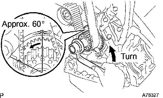1. Turn the crankshaft counterclockwise by approximately 60°.