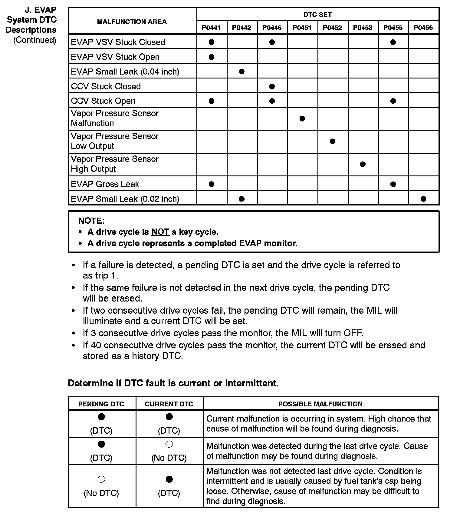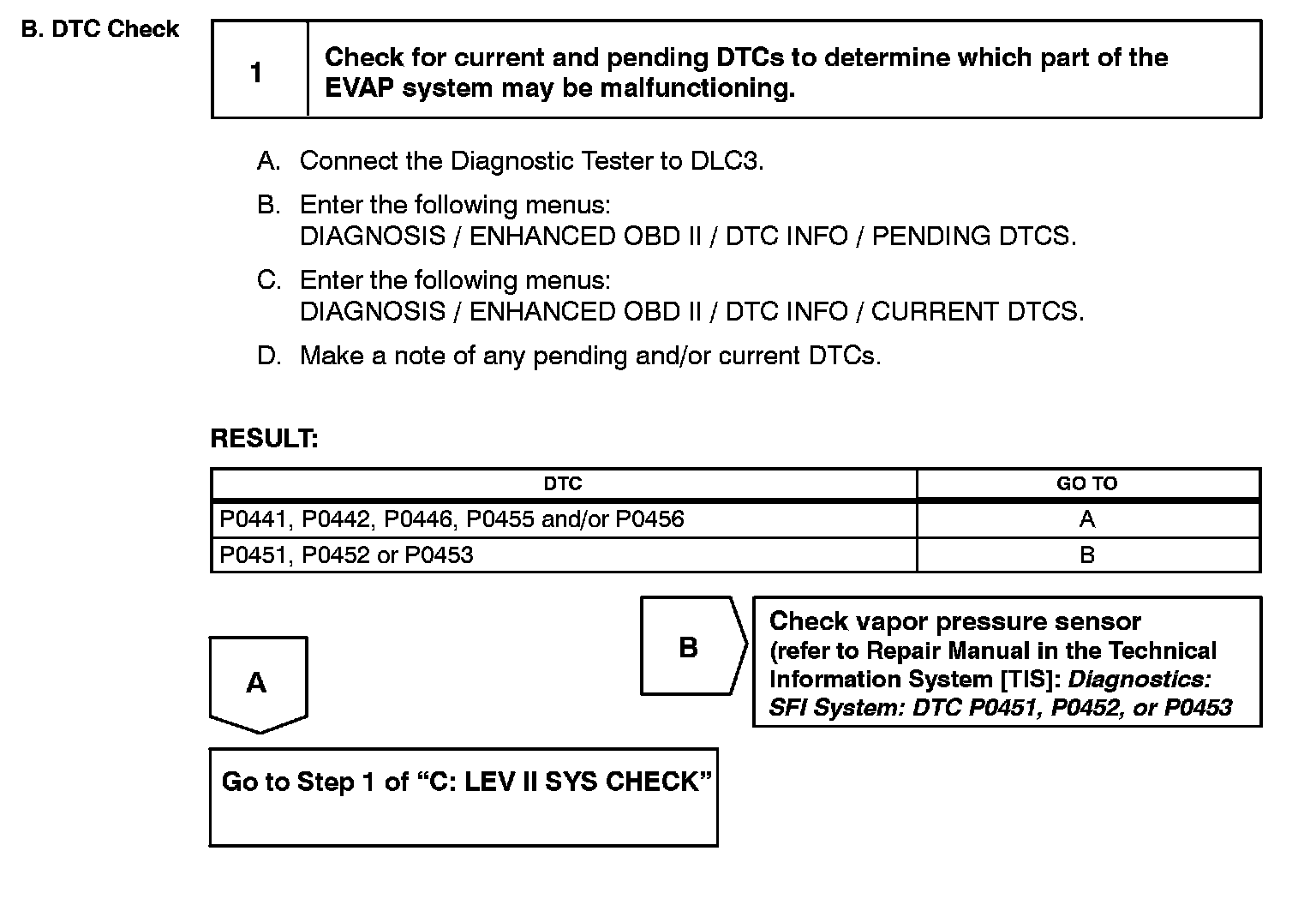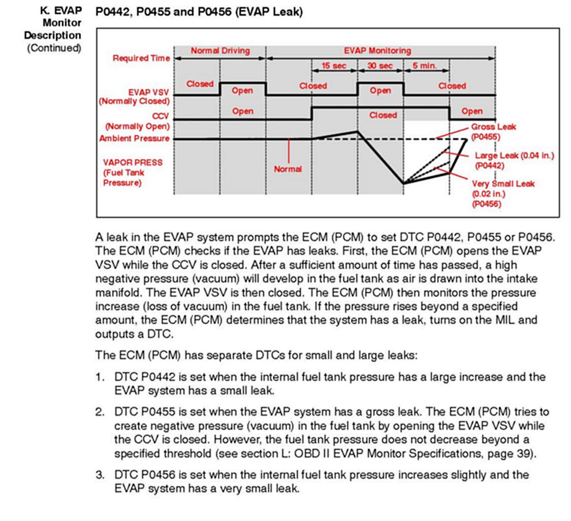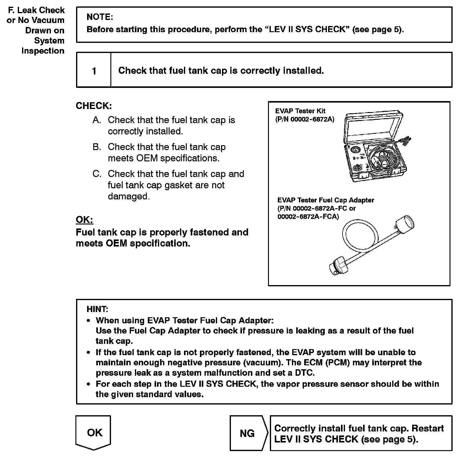 LEV II EVAP SYSTEM CHECK - DTC P0441, P0442, P0446, P0451, P0452, P0453, P0455 & P0456