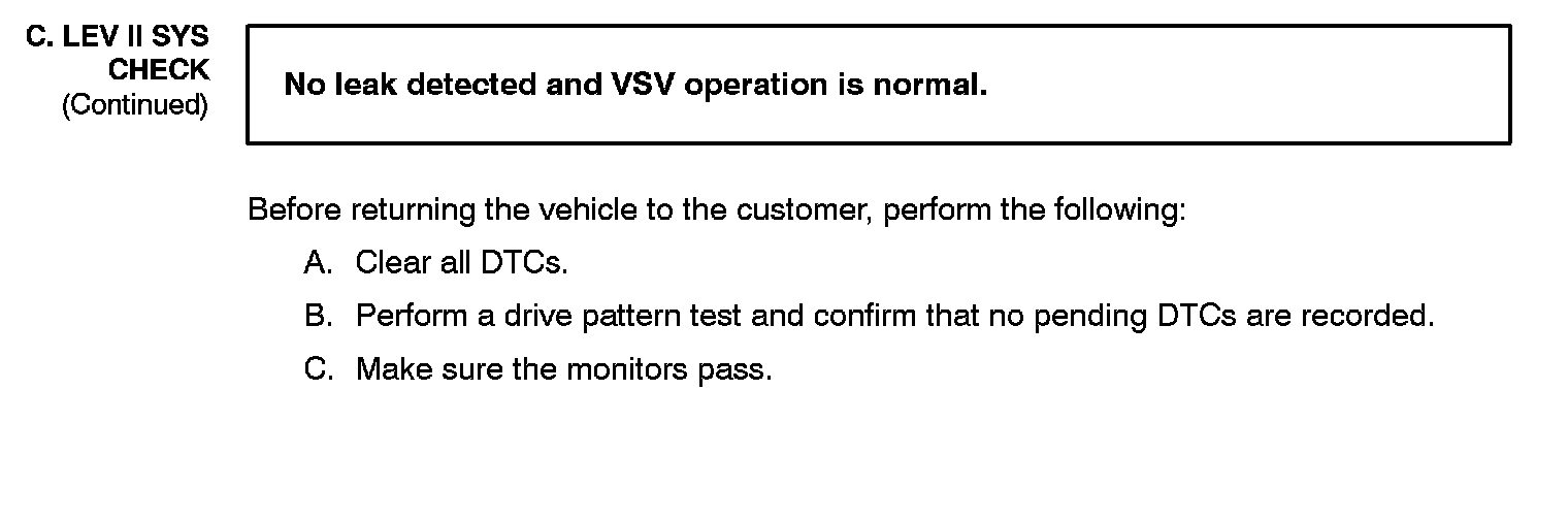 Once the vehicle condition is corrected, the LEV II System Check can also be used to confirm the repair before the vehicle is returned to the customer.