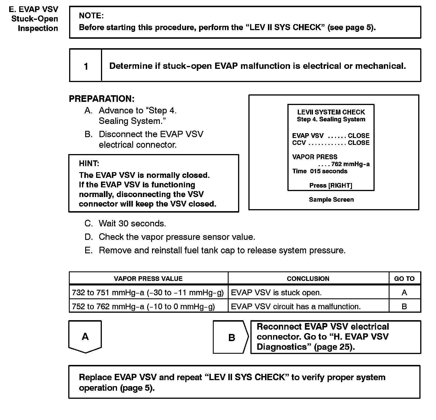 E. EVAP VSV STUCK-OPEN INSPECTION