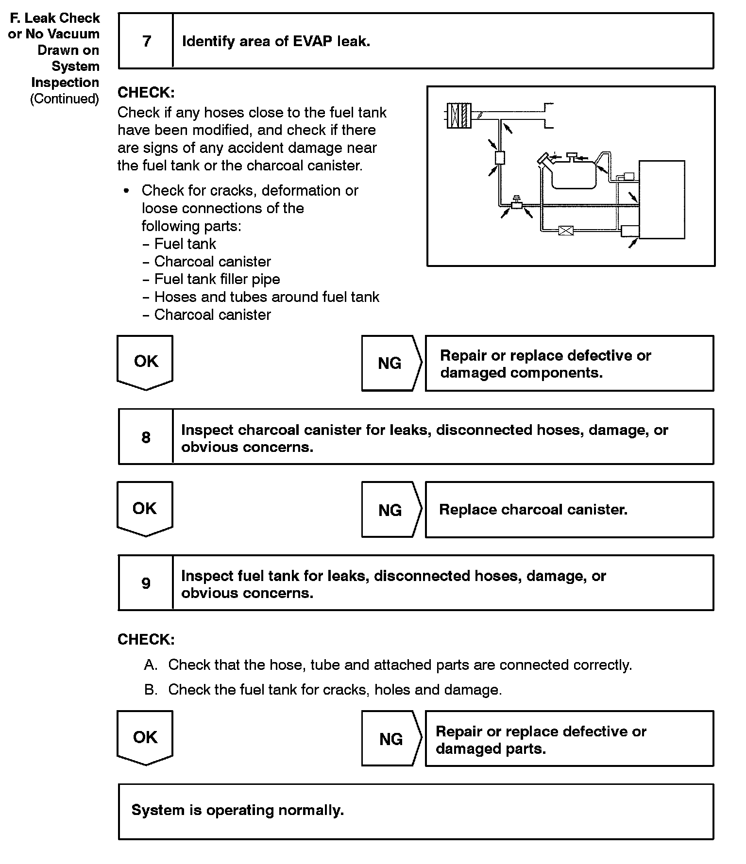 F. LEAK CHECK OR NO VACUUM DRAWN ON SYSTEM INSPECTION