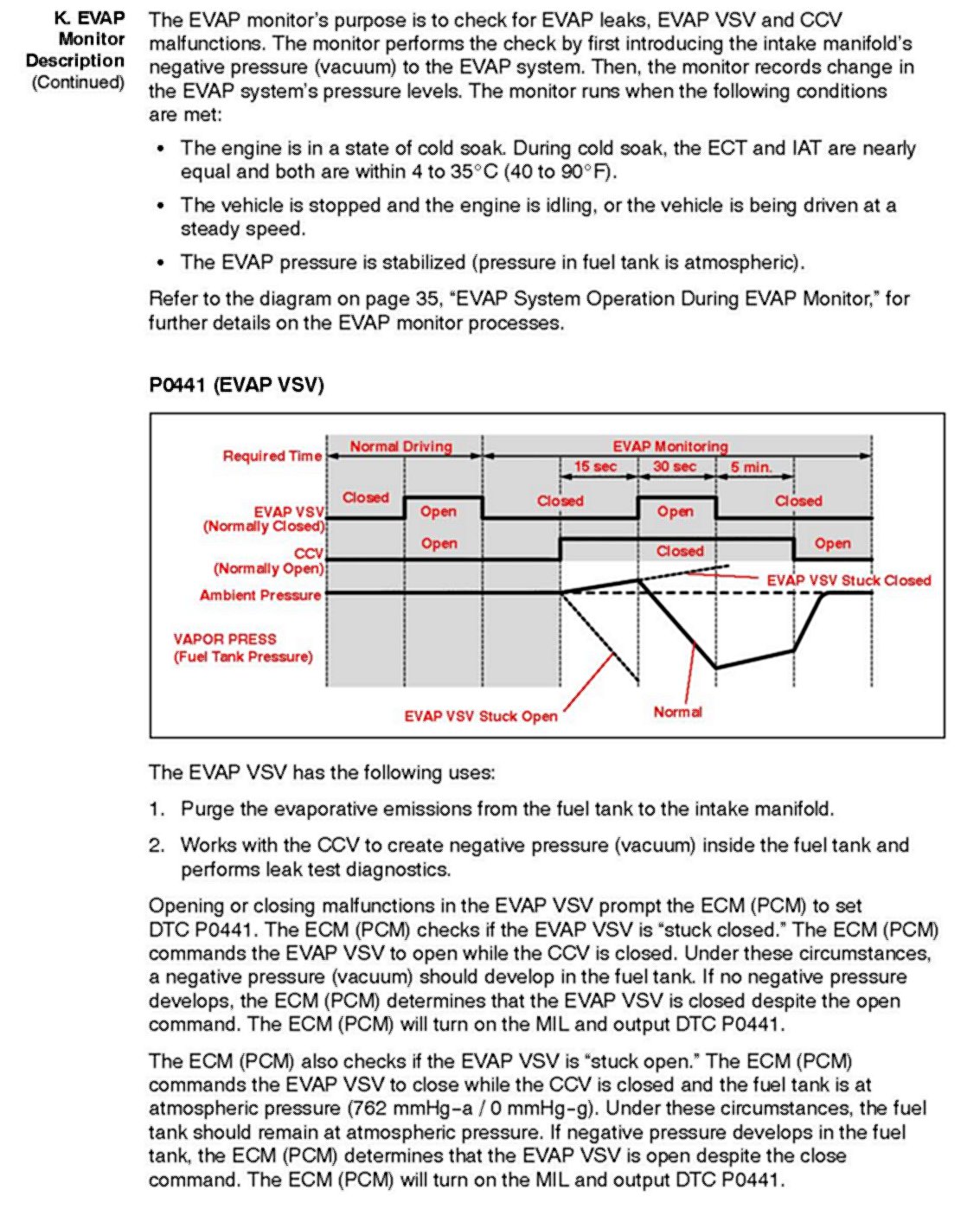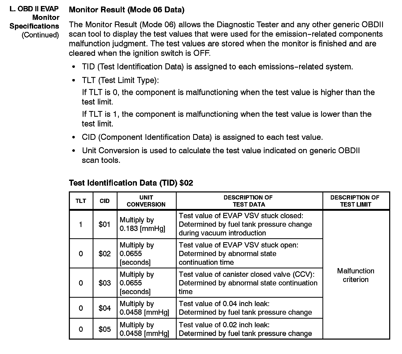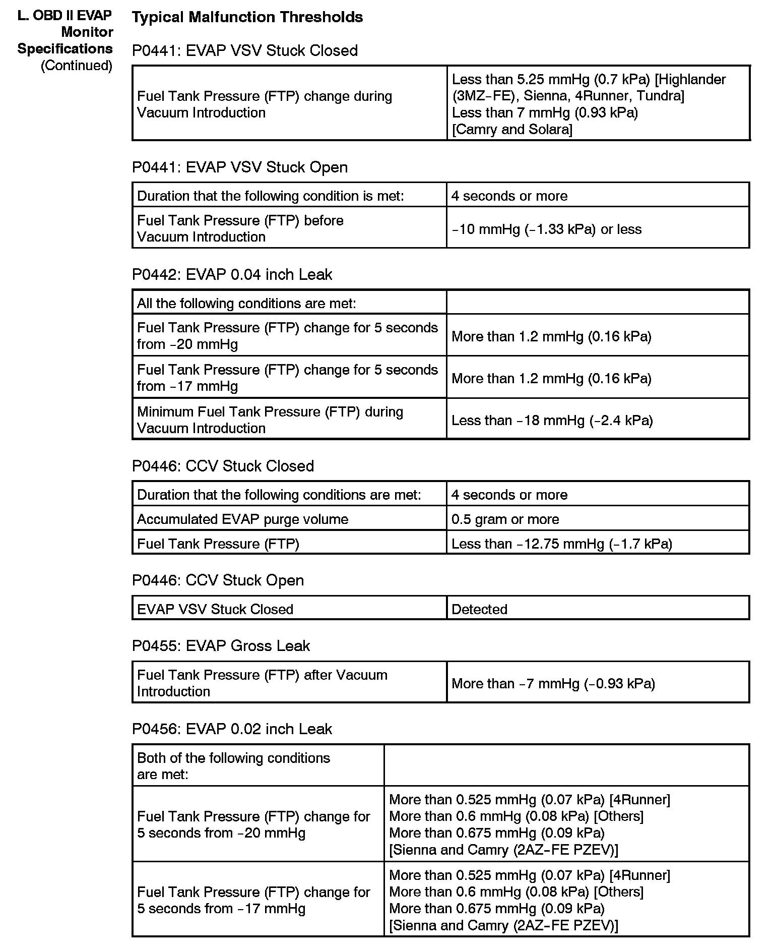 L. OBD II EVAP MONITOR SPECIFICATIONS