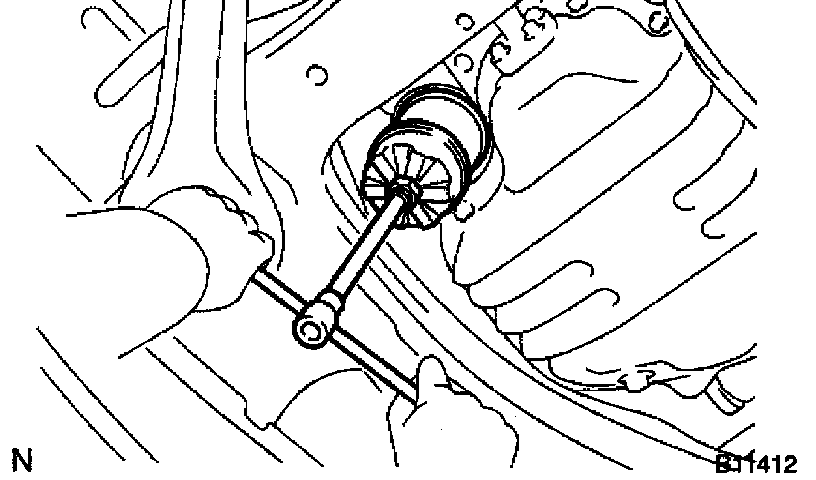 c. Lightly screw the oil filter into place, and tighten it until the gasket contacts the seat.