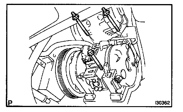 b. Remove the 2 bolts, nut and cooler compressor bracket.