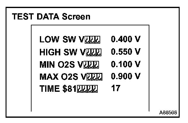 If the TEST DATA value appearing on the scan tool is out of the standard value, the O2S is malfunctioning. If it is within the standard value, the O2S is functioning normally. However, if the value is on the borderline of the standard value, the O2S may malfunction very soon.