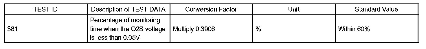 2. Find the conversion factor value of "TIME $81" in the O2S TEST RESULT chart. 0.3906 is specified for $81 in this chart.