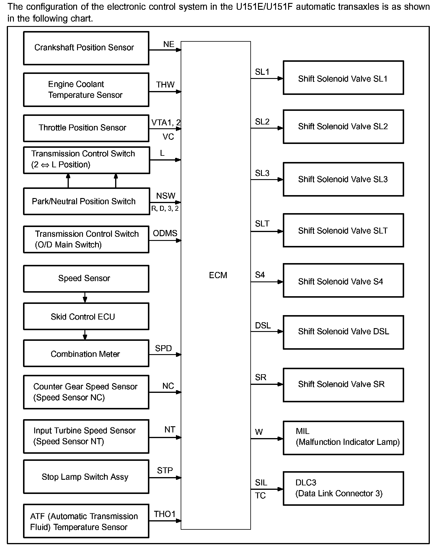 The ECT (Electronic controlled automatic transmission/transaxle) is an automatic transmission/transaxle that electronically controls shift timing using the ECM. The ECM detects electrical signals that indicate engine and driving conditions, controls the shift point, and selects the appropriate shift pattern based on driver habits and road conditions. As a result, fuel efficiency and power transmission/transaxle performance are improved.