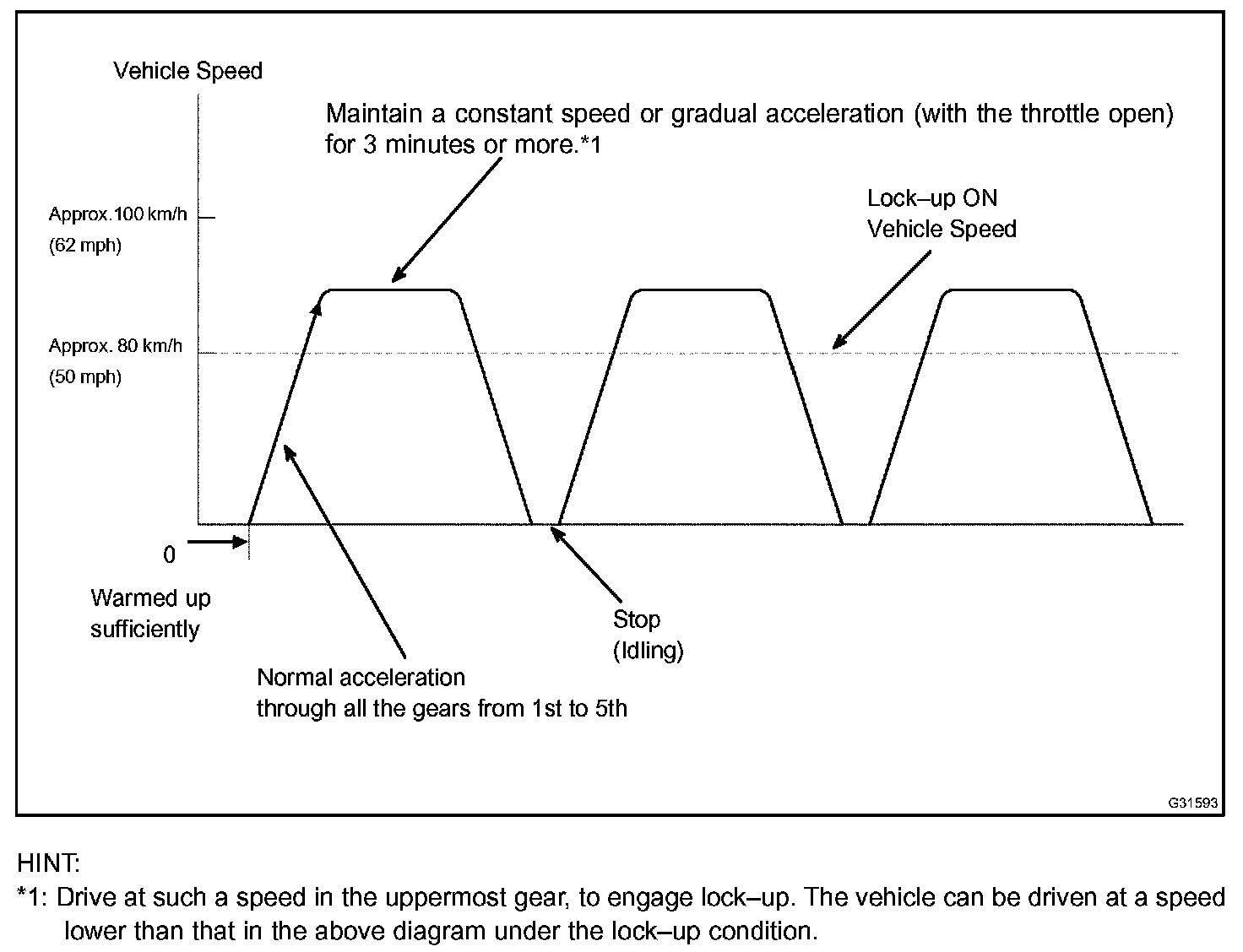 (The DTCs may not be detected due the actual driving conditions. And some codes may not be detected through this drive pattern).