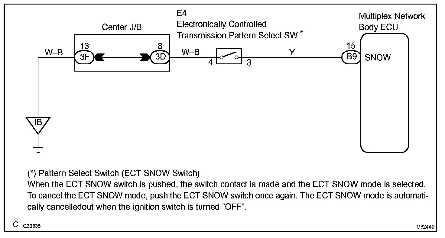 ECT SNOW is the system that operates the throttle motor to control engine output to reduce skidding of the driving wheels, guarantee takeoff acceleration, driving straightness and turning stability.
