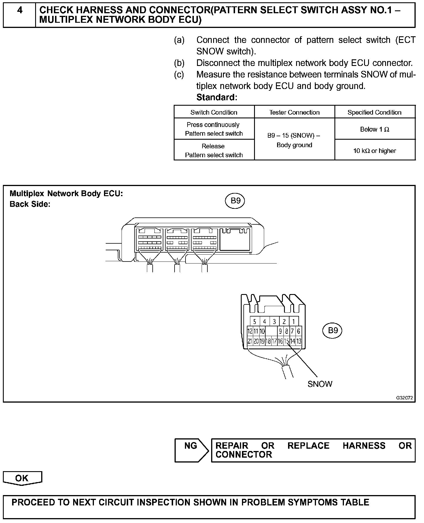 Multiplex network body ECU receives pattern select switch information, and sends it through the multiplex communication system to the ECM.