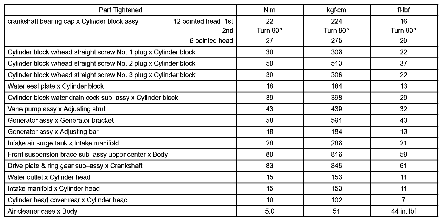 Engine Mechanical - Torque Specification Part 1: