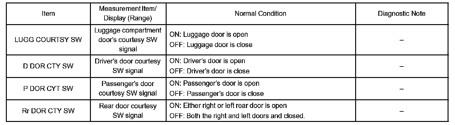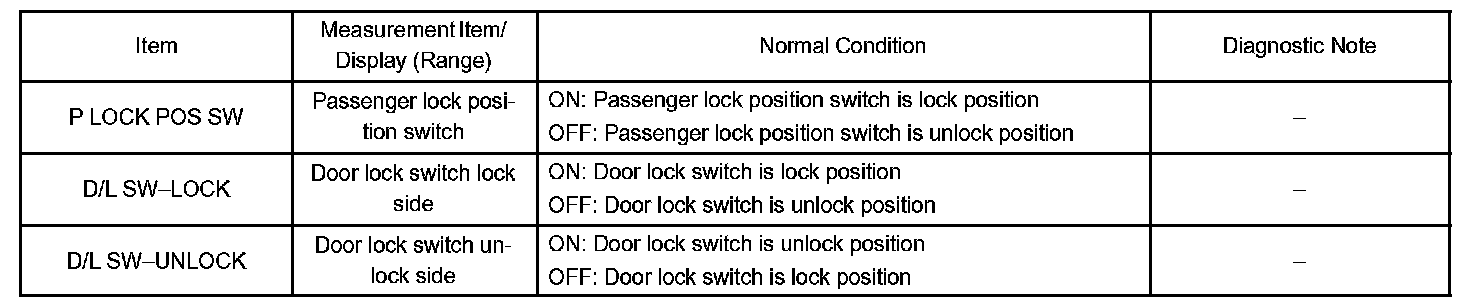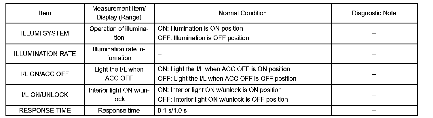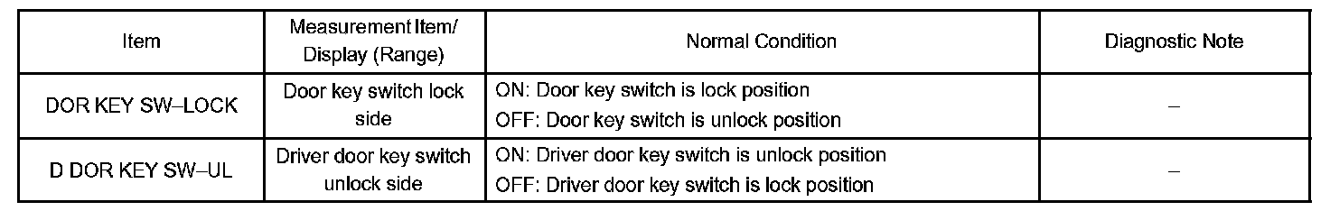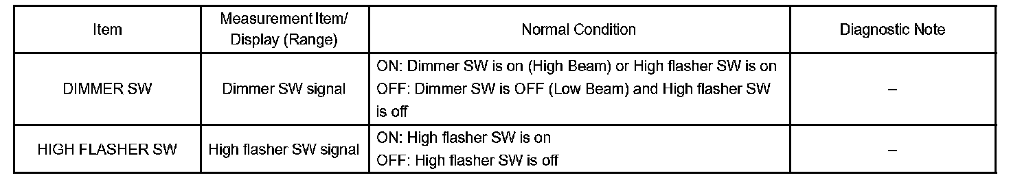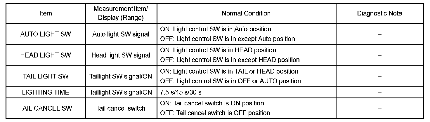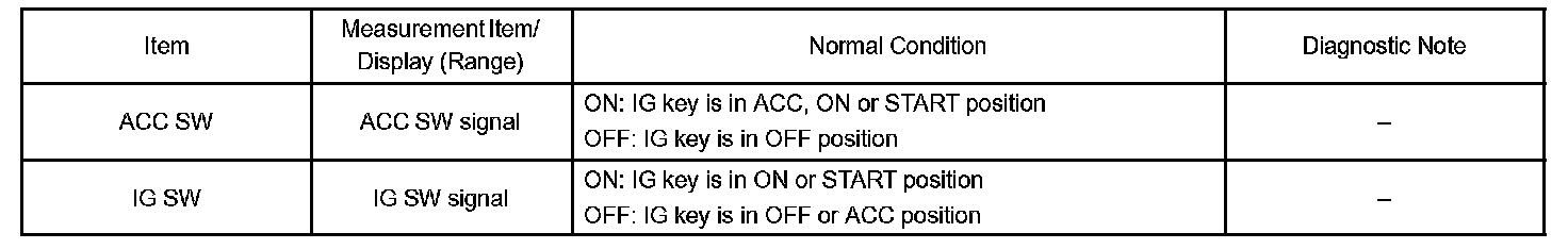 HINT: According to the DATA LIST displayed by the hand-held tester, you can read the value of the switch, sensor, actuator and so on without parts removal. Reading the DATA LIST as a first step of troubleshooting is one of the method to shorten the labor time.