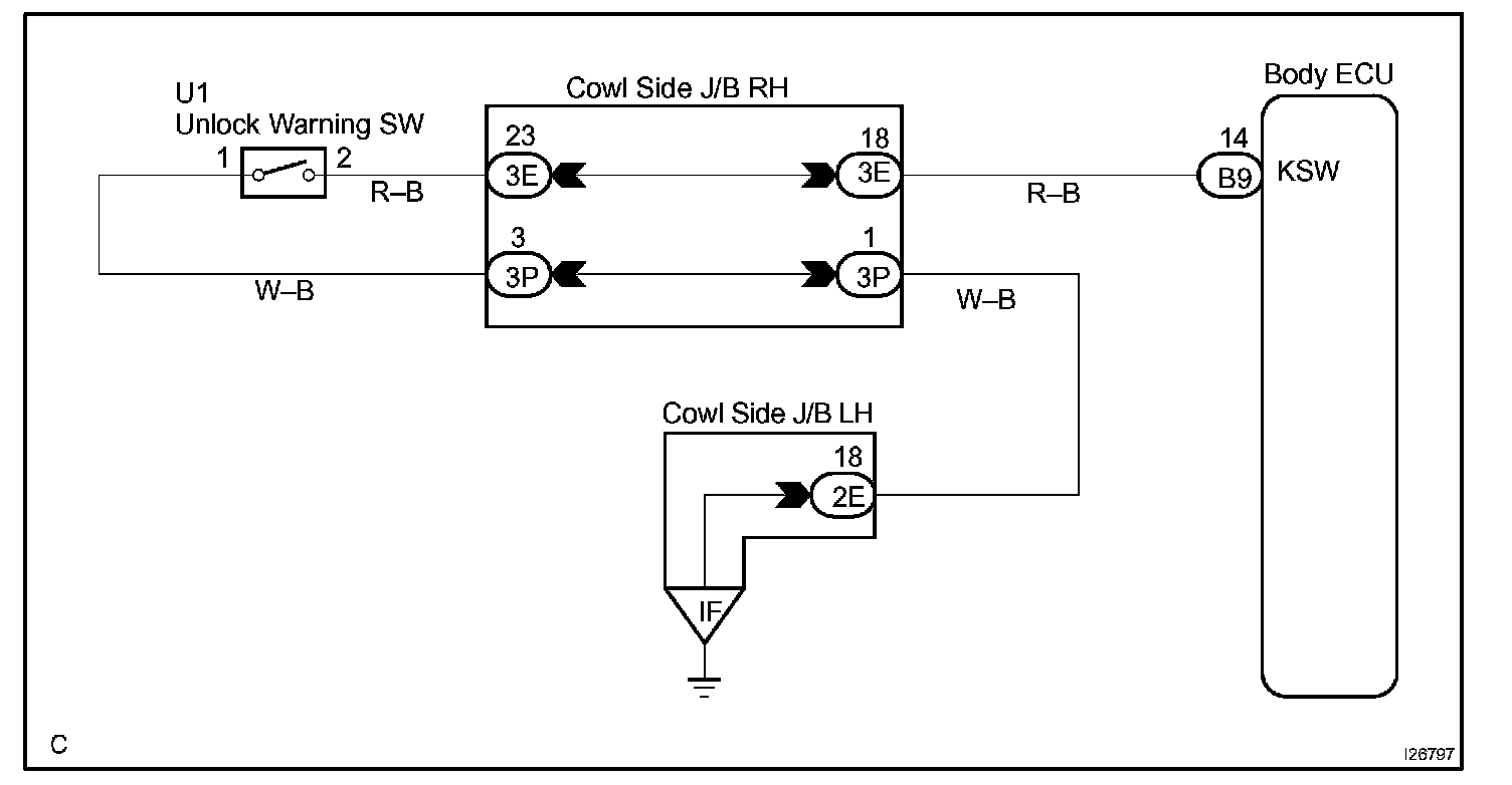 CIRCUIT DESCRIPTIONThe key unlock warning switch goes on when the ignition key is inserted the key cylinder and goes off when the ignition key is removed.