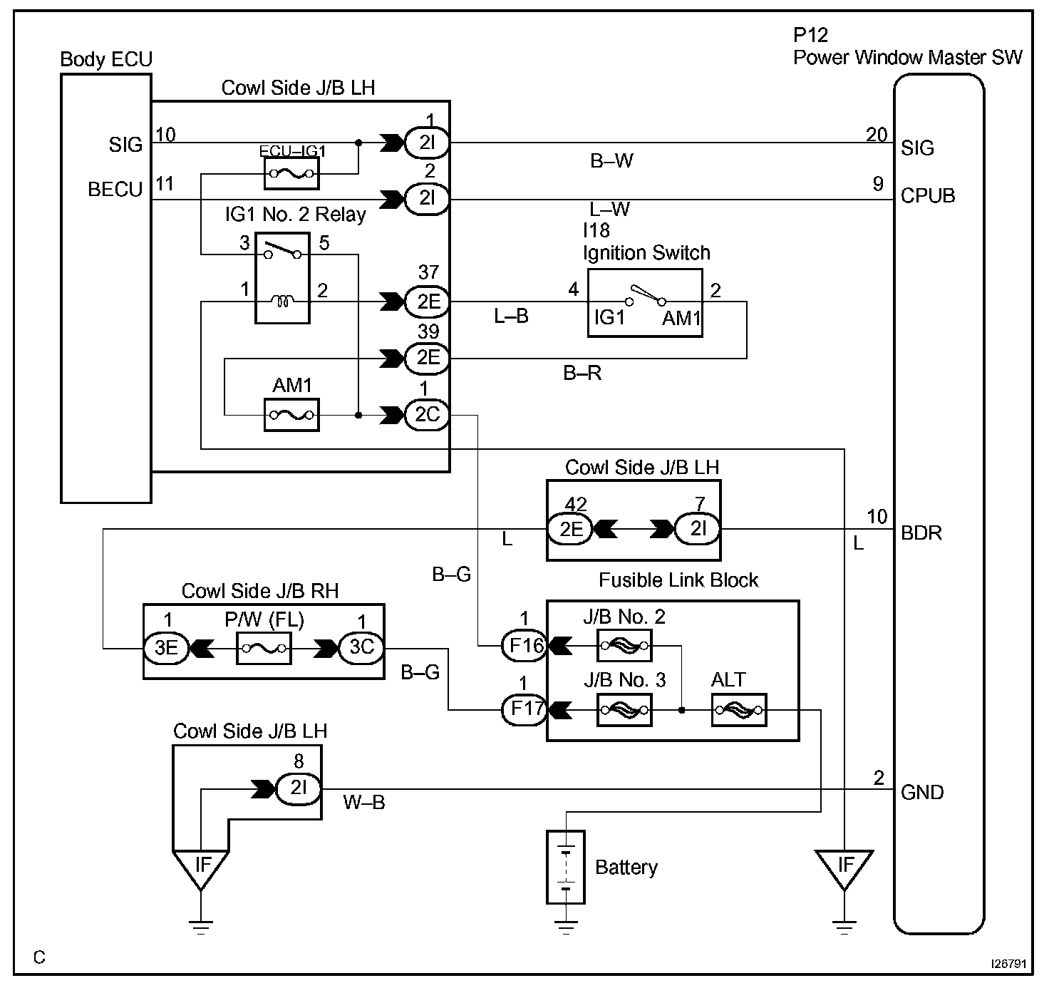 CIRCUIT DESCRIPTIONThis circuit supplies power to operate the power window master switch.