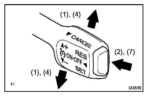 b. Check the control switch (MAIN, CANCEL, SET/COAST, RES/ACC).