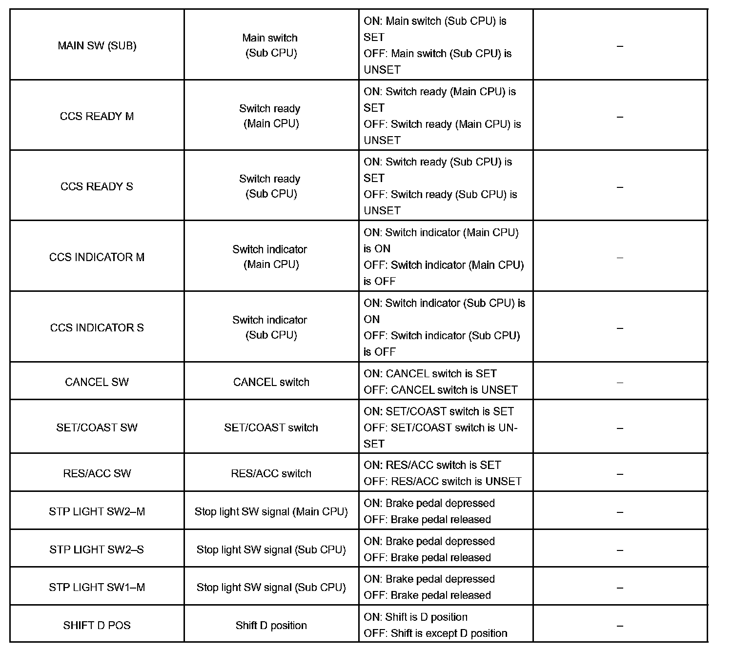 DATA LISTHINT: According to the DATA LIST displayed by the hand-held tester, you can read the value of the switch, sensor, actuator and so on without parts removal. Reading the DATA LIST as a first step of troubleshooting is one of the method to shorten the labor time.
