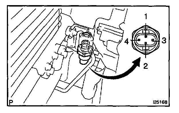 1. Connect the positive (+) lead from the ohmmeter to terminal 4 and the negative (-) lead to terminal 1.