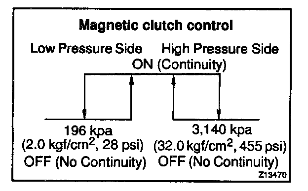 b. Inspect pressure switch continuity (Magnetic Clutch Control)