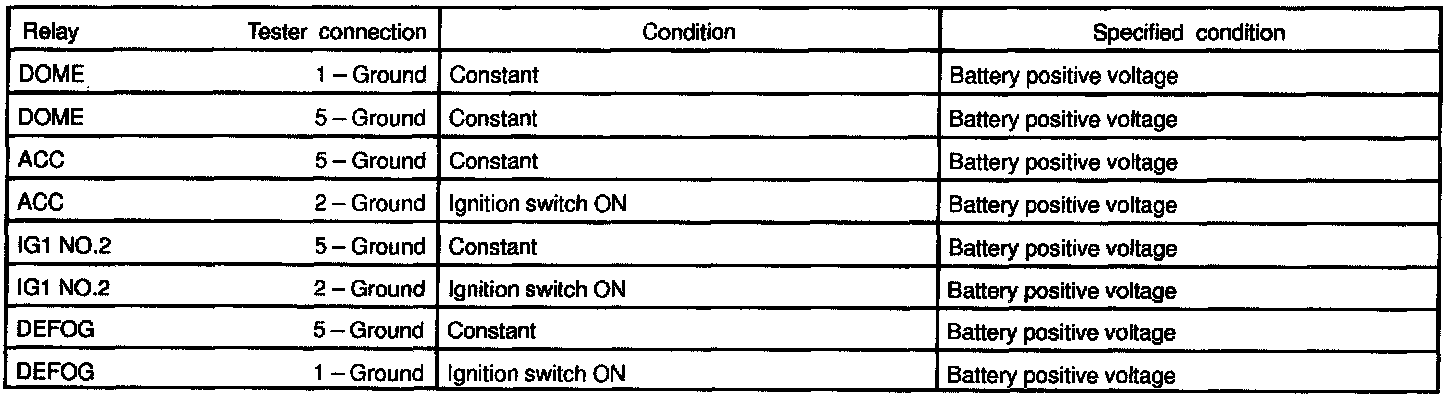 HINT: The relay is built in engine room junction block. Also the relay is constructed with a relay block that is in the junction block as a unit. To disconnect the wire harness connecting with relay block is impossible. If the relay has a malfunction, replace it with junction block assembly wire harness together.
