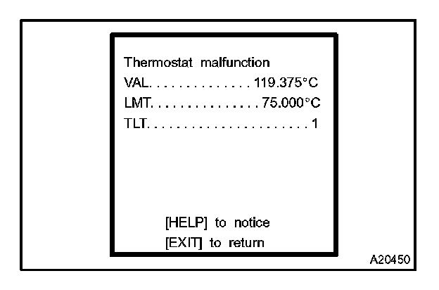 - TEST VALUE indicates the detection parameter value (Example: P0128 Thermostat Malfunction = Engine coolant temperature) at the time malfunction (or normal) judgement is done.
