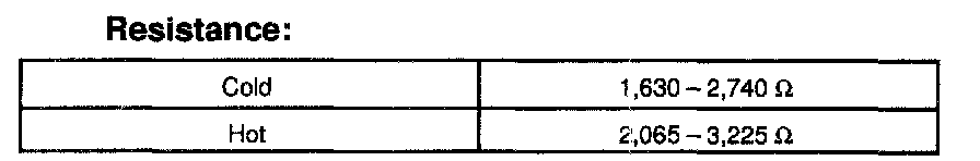 ON-VEHICLE INSPECTIONNOTE: "Cold" and "Hot" in these sentences express the temperature of the coils themselves. "Cold" Is from -10 °C (14 °F) to 50 °C (122 °F) and "Hot" is from 50 °C (122 °F) to 100 °C (212 °F).