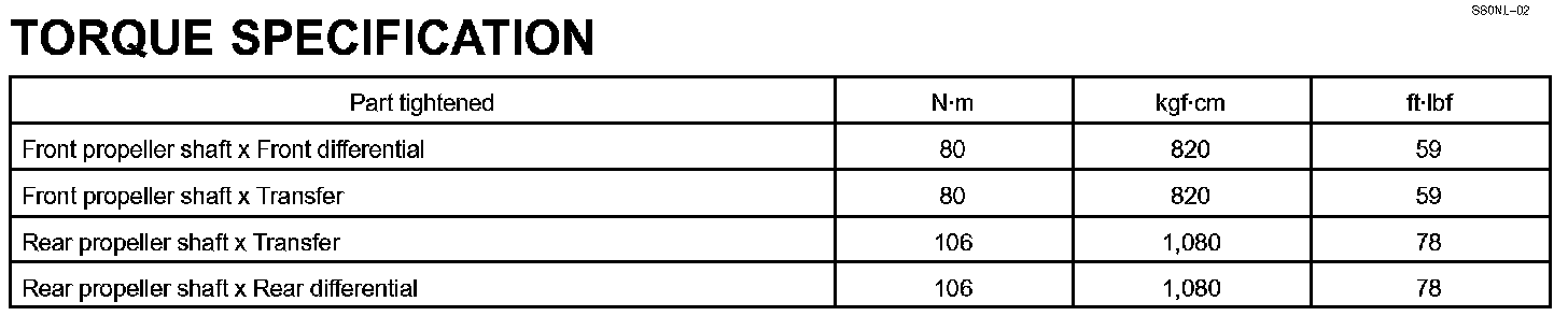 Propeller Shaft - Torque Specification: