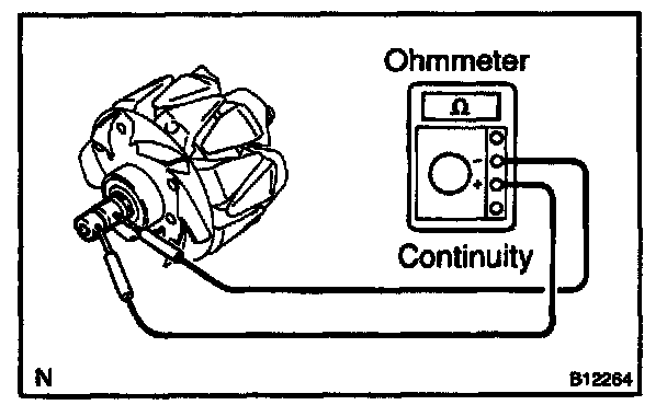 Using an ohmmeter, check that there is continuity between the slip rings.