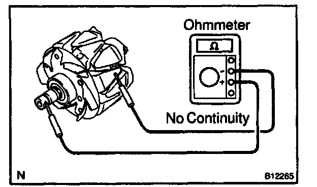 Using an ohmmeter, check that there is no continuity between the slip ring and rotor.