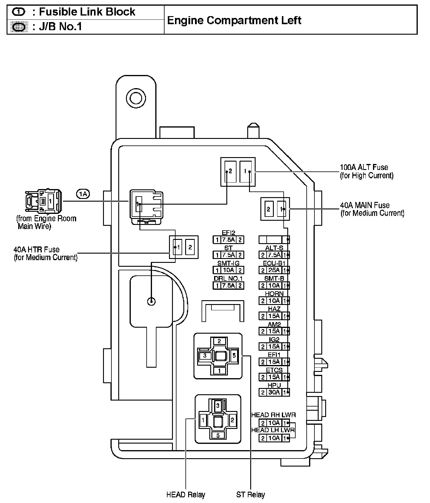 Fusible Link Block & J/B No.1 - Engine Compartment Left: