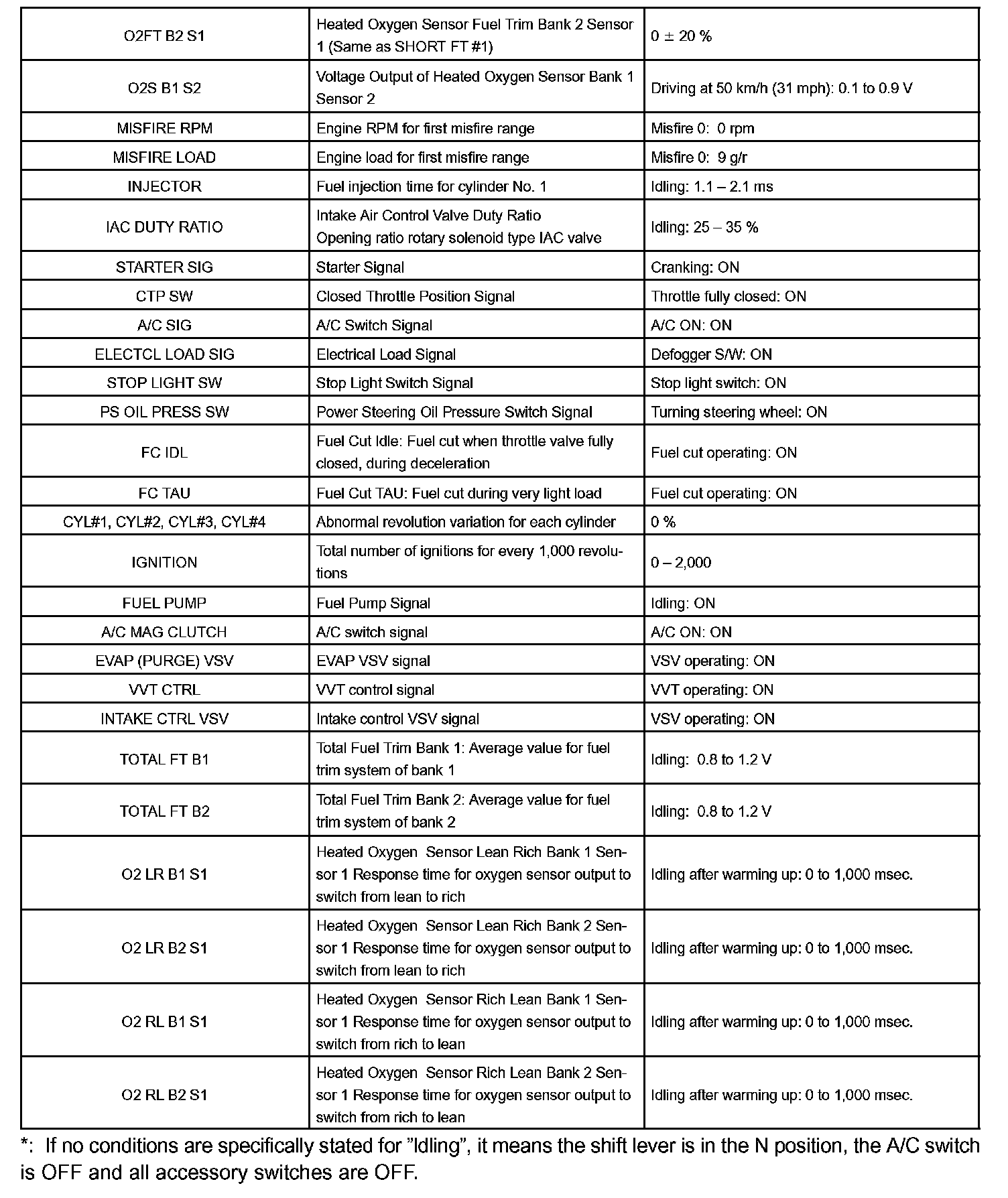 DATA LISTHINT: Using the hand-held tester's DATA LIST allows switch, sensor, actuator and other item values to be read without removing any parts. Reading the DATA LIST early in troubleshooting is one way to save time.