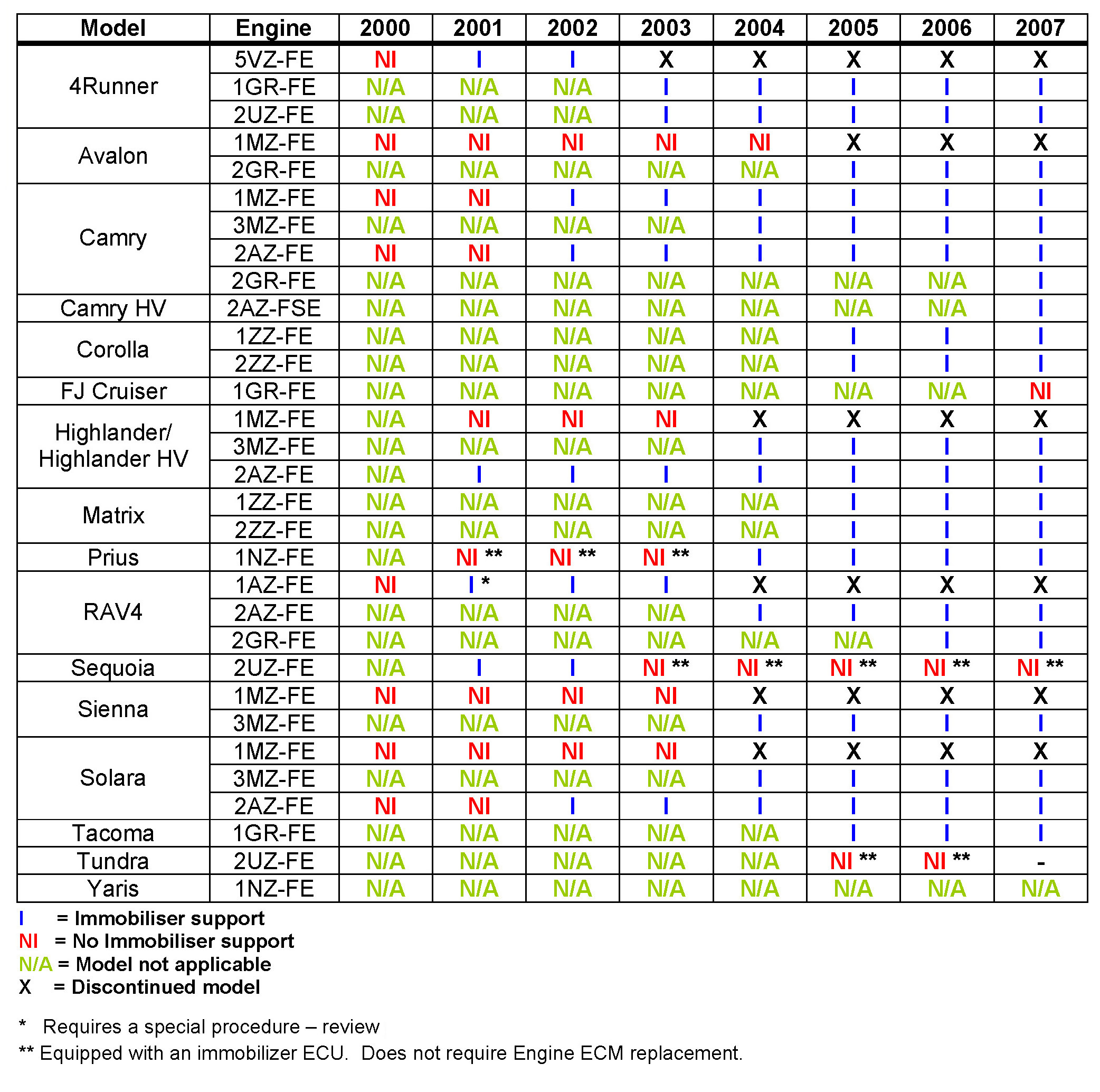 - January 07, 2006: The model years for each model have been specifically defined in the "Applicable Vehicles". The "Required SSTs" has been updated.