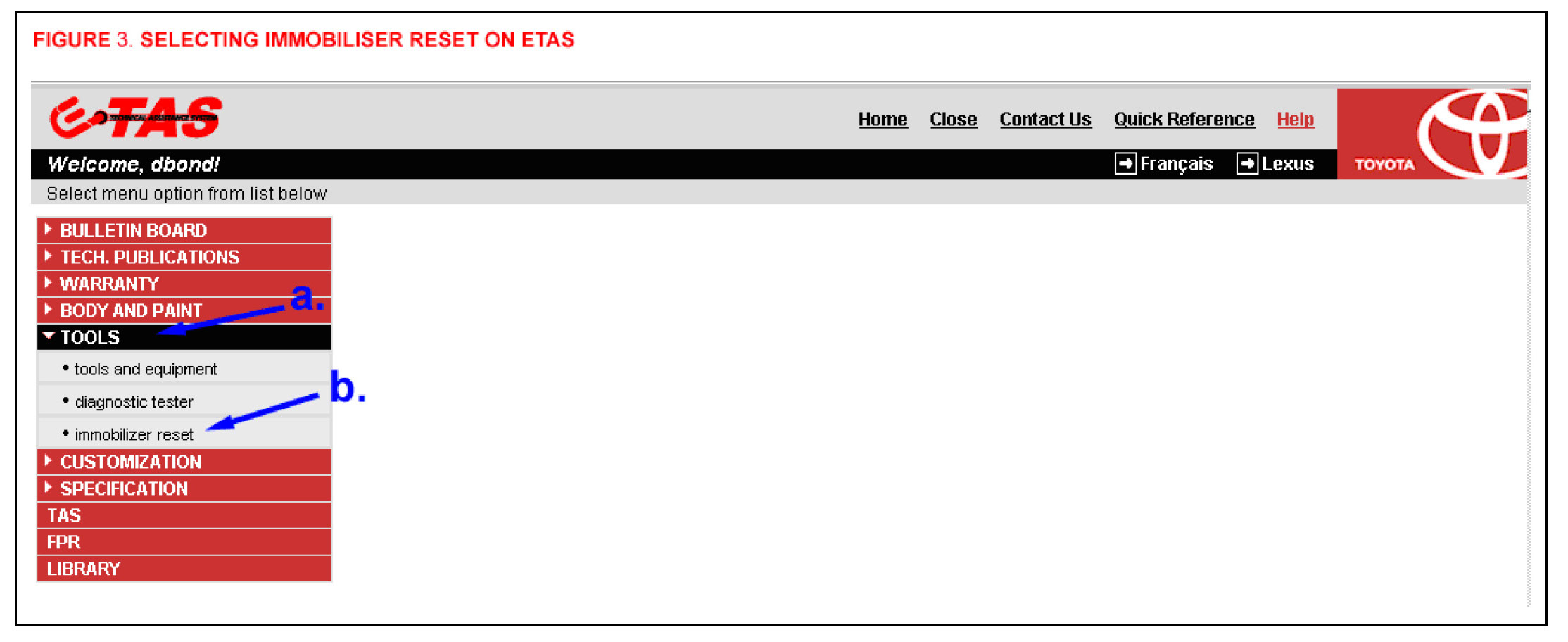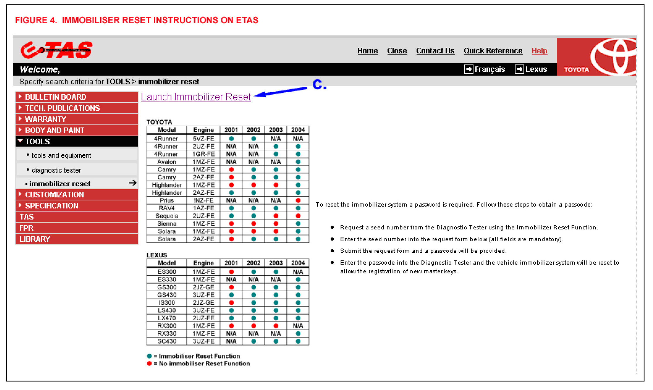 c. Read the instructions on the screen and click on Launch Immobiliser Reset. (See Figure 6.)