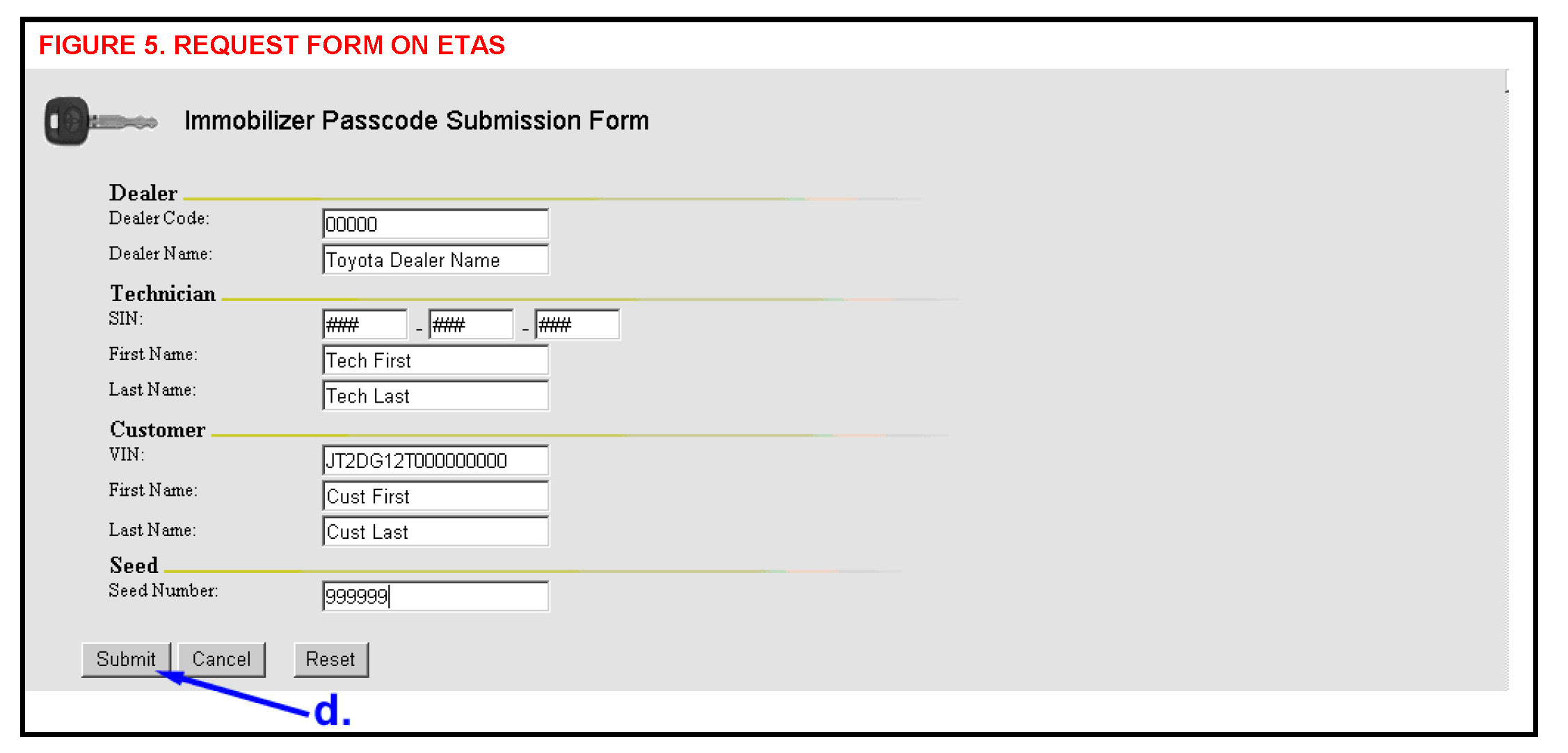 d. Complete the request form and enter the "Seed Number" from the Diagnostic Tester. Click on Submit. (Figure 5)