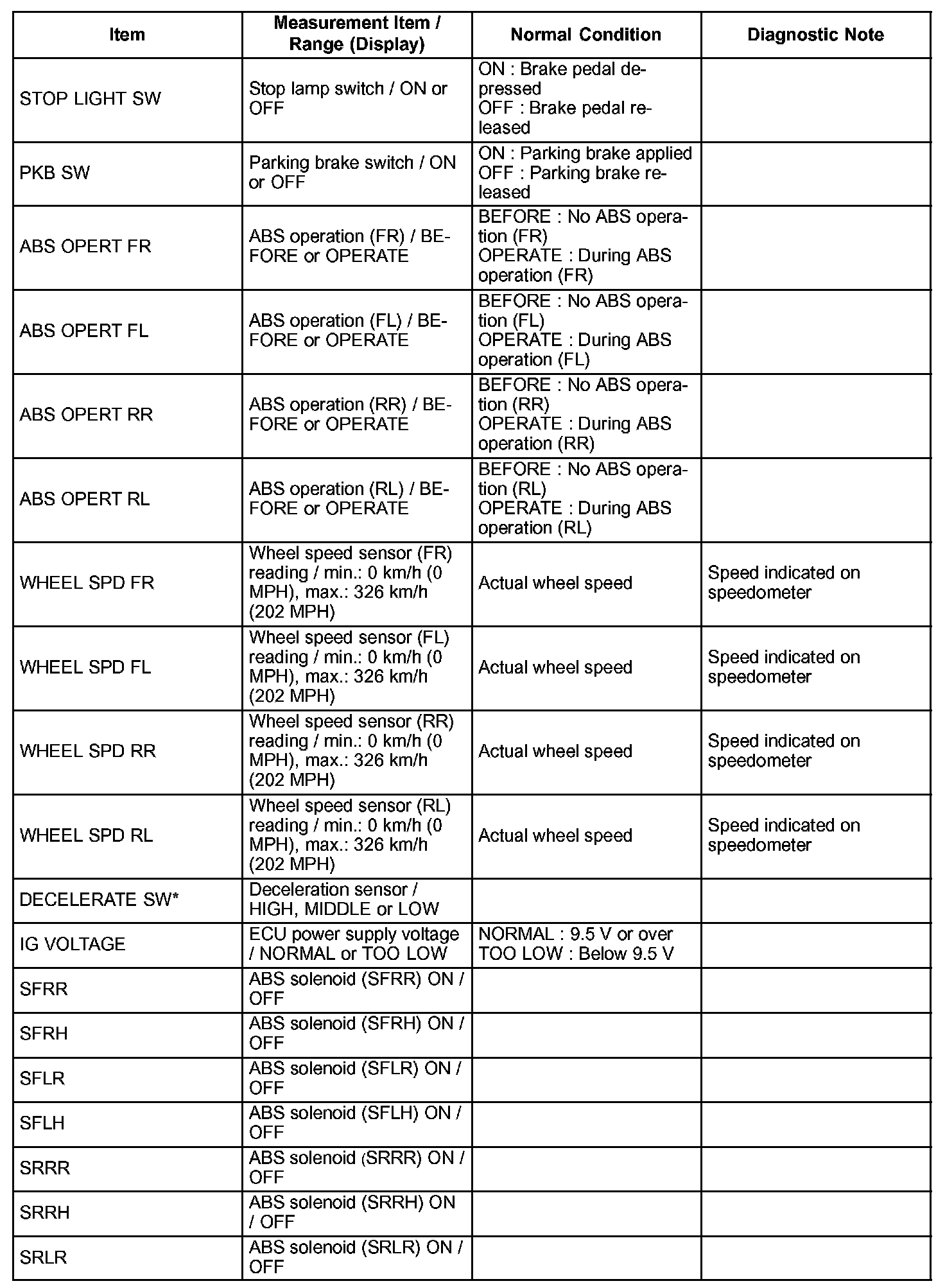 DATA LISTHINT: According to the DATA LIST displayed by the Hand-held tester, you can read the value of the switch, sensor, actuator and so on without parts removal. Reading the DATA LIST as a first step of troubleshooting is one of the method to shorten the labor time.