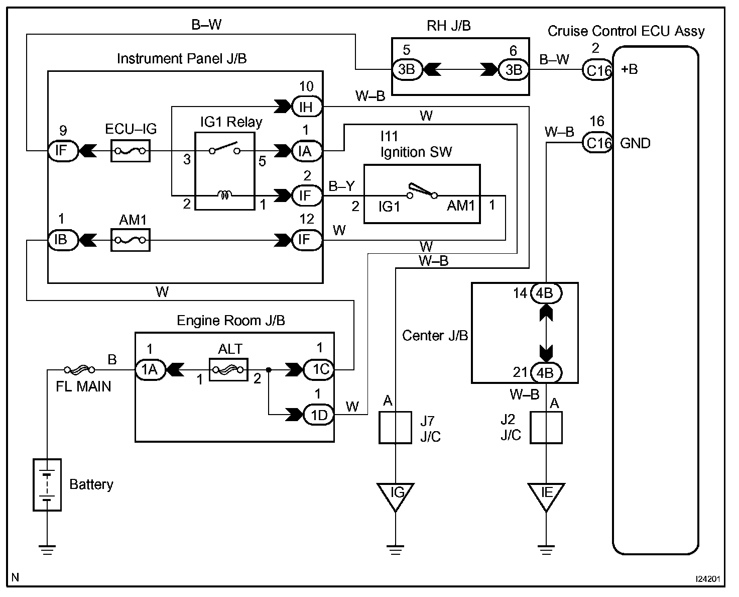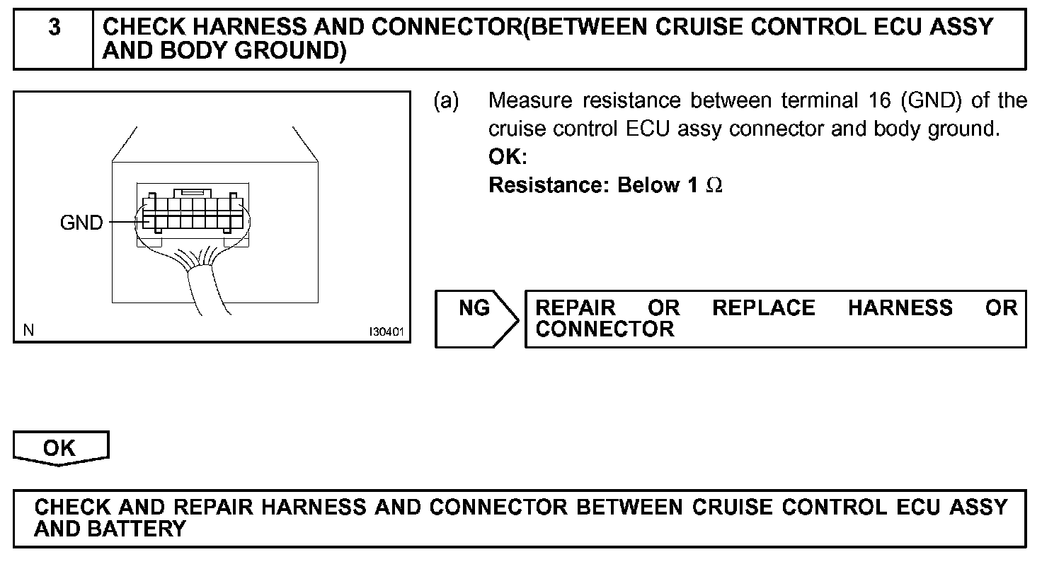 CIRCUIT DESCRIPTIONThe cruise control ECU assy power source supplies power to the actuator and sensors, etc., when terminal GND and the case of the cruise control ECU assy are grounded.